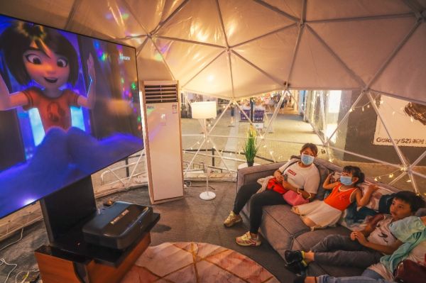 炎炎夏日,没有什么比宅在房间里体会悠闲的美好更惬意的了。爱普生特别打造了不同主题的观影空间,让每位观众都能找到专属自己的观影天堂。在浪漫十足的圆顶玻璃屋观影房,爱普生特别设有EH-LS300激光电视,让现场观众尽享超大屏幕带来沉浸式体验。作为一款视听娱乐新旗舰,LS300拥有引以为傲的3600流明,结合上多种亮度模式,几乎可以胜任各种不同的环境。再经过超广色域的真实还原,每一个画面细节都能被清晰锐利的呈现出来,画面生动有趣,富有层次感。100英寸的大屏幕,清晰画质,沉浸式影音效果,带你一起畅享爱情电影的浪漫时刻。