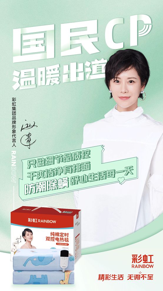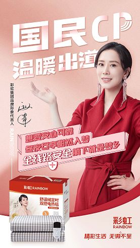尼尔森团队曾针对中国电热毯市场做过一次深入调研,发现其消费主力对代言人的认知度与喜爱度超过77%,同时代言人也是品质体验的拥有者。此次海清代言彩虹,是双方对品质追求的不谋而合,也是彩虹集团走向年轻化、数字化的重要尝试。