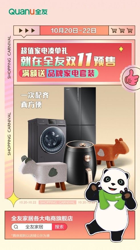 做时尚生活家,就在双十一全友家居!快上各大电商平台搜索“全友家居”,超值好物抱回家,尽情享受精致生活!