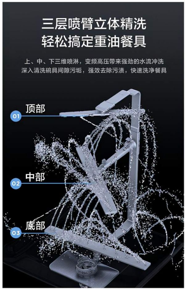 三层喷臂立体洗净,轻松搞定油腻餐具