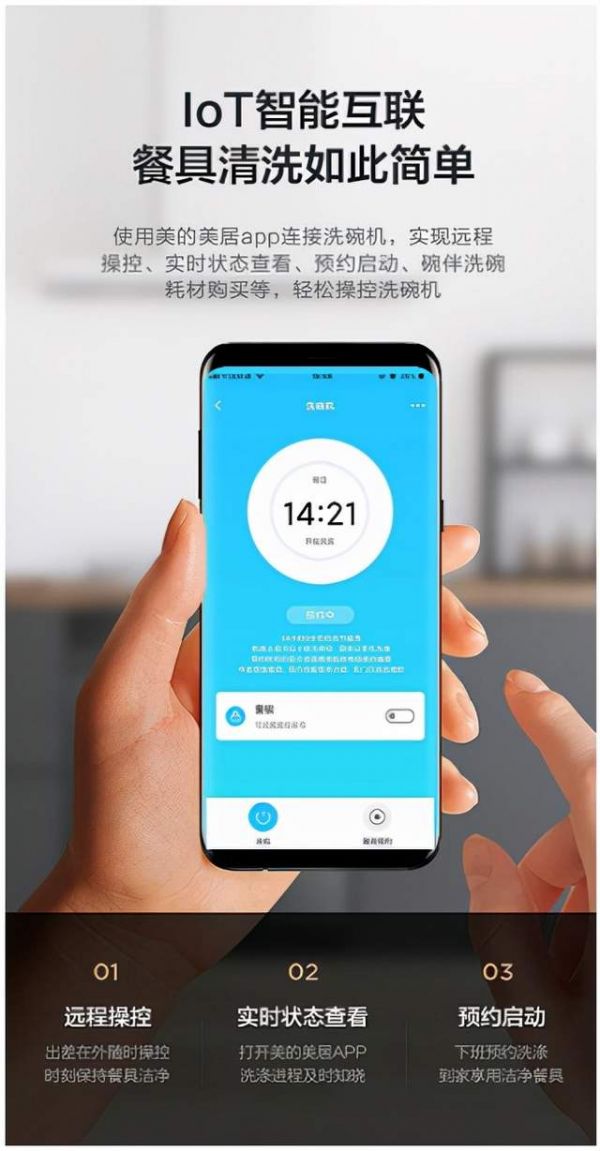 在智能化时代,家电设备也变得更加智能,让用户操控更加便捷省心。过去用户可能要在家电设备面前手动操控,还要全程盯进度。现在通过一部手机就能实现一键互联。美的中式灭菌洗碗机P50具备IOT智能互联功能,用户只需下载美的美居APP,即可实现远程操控、实时状态查看、预约启动等,轻松操控洗碗机,让你不用来回跑厨房。