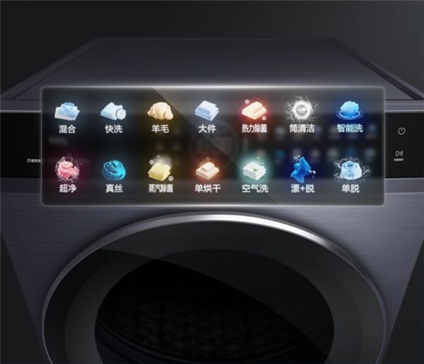 除此之外,P12洗衣机的颜值也是非常高的,它拥有一款炫彩智屏,能够呈现出十多种专业程序彩色图标,炫彩配色的加持能够帮助用户更为直观明了的理解每一个图标的作用,在选择相应的洗涤操作时也更为便捷、易懂。