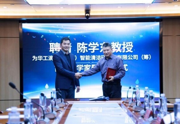 武汉滴水智能科技有限公司CEO周杰为陈学东教授颁发“华工滴水(重庆)智能清洁研究院有限公司首席科学家聘书”