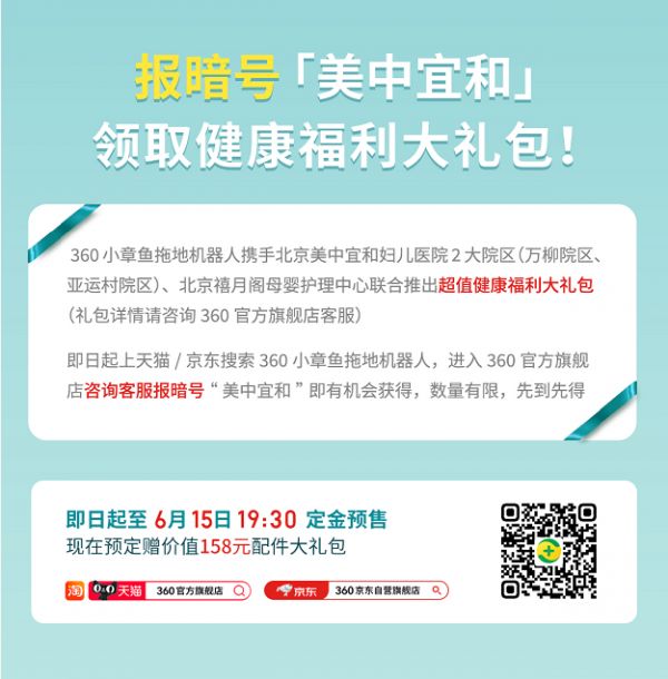 近日,360小章鱼拖地机器人入驻北京美中宜和妇儿医院(万柳院区、亚运村院区),以及美中宜和旗下北京禧月阁母婴护理中心,成为该院的首席洁净官。