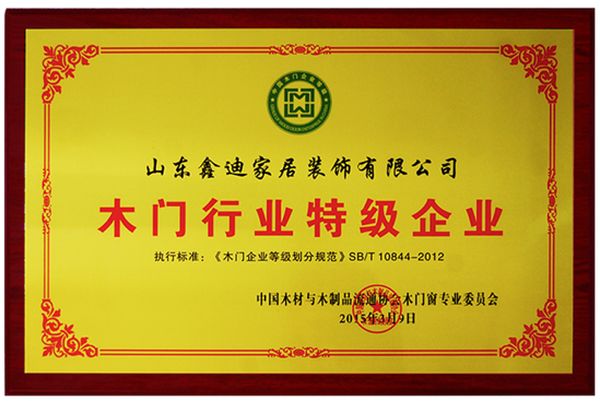 此外,鑫迪木门还凭借过硬的产品质量、良好的口碑、先进的设备生产线以及良好的管理运营荣获中国木门特级企业的称号。