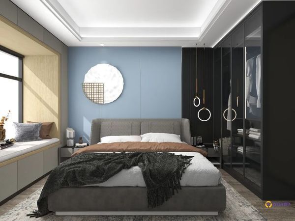 蓝色打造卧室空间,舒缓宁静氛围,让舒适睡眠变得简单,让分明的层次中凸显着富有张力的空间美感。