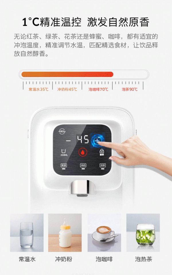 以卡赫净饮一体机WPD60-P为例,这台净水热饮机是市面上非常受欢迎的一款净水器,而且能够实现智能操控,让用户体验到满满的科技感,解锁了智能饮水的信访室。拥有这样的一台机器,就好像同时拥有了厨下净水器、烧水壶、饮水机、恒温壶、泡奶机以及煮茶器等六大机器,不仅不占厨房本就不大的空间,而且用起来也是十分方便。家里有小孩子的宝妈们再也不用担心冲奶的水温太烫或者太冷,恒温模式直接帮你搞定。而且还可以用手机智能操控,实现躺平掌握水温,真的是很贴心地设计了。