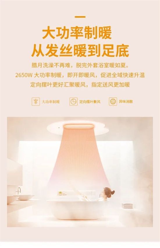 百搭各种风格,打造理想浴室,欧斯宝O?氧爸爸·浴室空调,双档取暖控温,360°室内循环,3分钟快速暖房,同时还拥有智能净味、全域取暖、负离子净化、智能干燥、独立吹风、换气、氛围灯等功能。一键开启舒适沐浴。