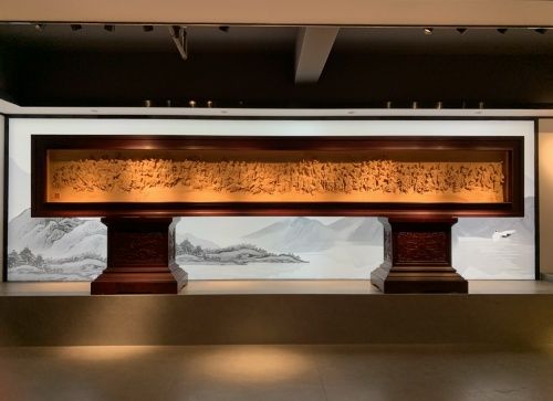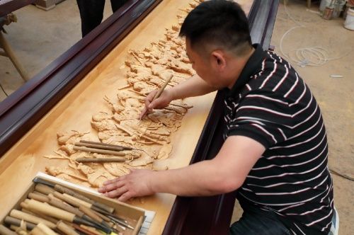 据陈杭峰大师介绍,整个作品从创作到完成耗时一年多时间,作为妇孺皆知的经典名著,最难的是既要准确形象地传达人们人们心目中的经典熟知形象,又要符合木雕的创作手法,因此在手工雕刻创作的时候,陈杭峰大师带领的团队,用心去揣摩这一百零八将每个人物的性格特征,反复推敲,不断优化,加上精湛的东阳木雕工艺,最终让这幅一百零八将的人物群像成为木雕艺术精品之作。目前,《水浒一百零八将》已正式陈列于东邦红木艺术收藏馆入口大厅,作为艺术馆经典代表作供大家品鉴参观。
