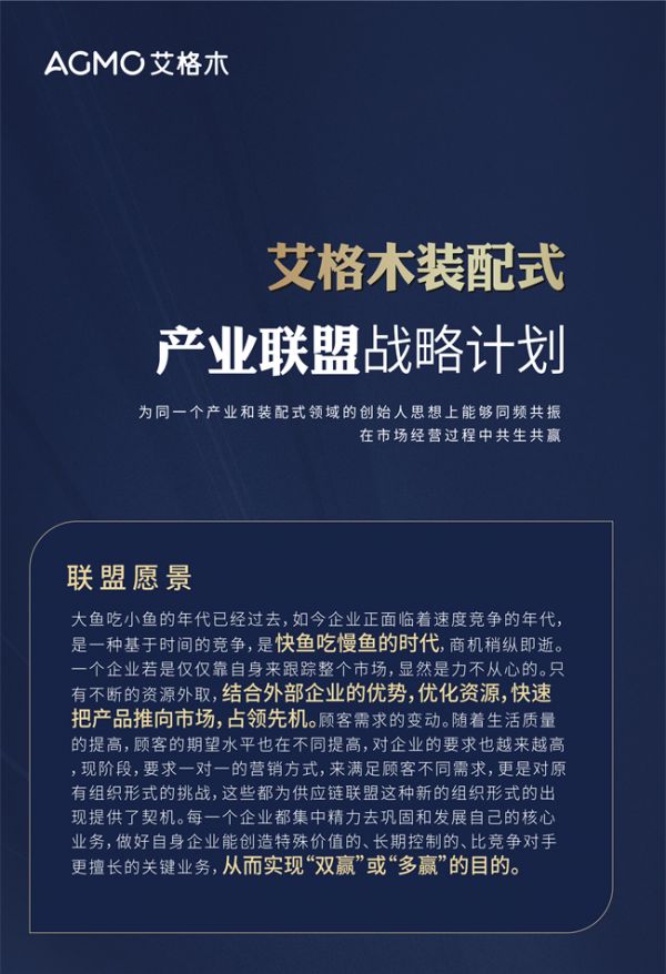 好的产品需要前端更优质的供应链资源,亦需要更多的行业有志之士加入,共同推动装配式行业健康有序的发展,输出行业的标准,相互借力,借势,借平台,相互监督,推动行业规范,艾格木也希望得到更多行业及消费者的认可和支持。