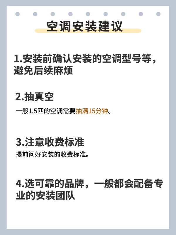 1.安装前确认安装的空调型号等,避免后续麻烦