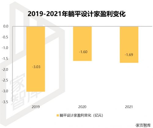 事实也是如此,2020年下半年疑似实现亏损收窄的躺平设计家,在2021年再次交出了亏损1.69亿的成绩,相比于2020年全年1.6亿的亏损进一步扩大。而与之对应的,则是其仅千万级别的营收。