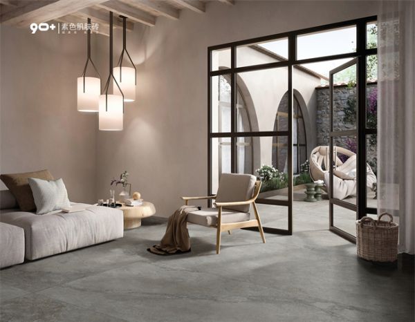 在仿古砖的赛道上,90+更是提出了“六个更”的设计理念——更原创、更自然、更朴素、更细节、更机理、更纯正色彩之后甚至扩充到十个维度,在“90+轻潮现代砖”的基础上进一步升级,推出了更符合现代审美的“90+素色肌肤砖”。哑光砖的制作和设计却比个性化更讲究工艺,例如肌理质感的创造,既讲究材质、温度和模具,同时还非常需要严苛的颜色把控。90+的瓷砖便在这样严苛的标准下,呈现出素雅、绵密、细腻而朴素的意境美。