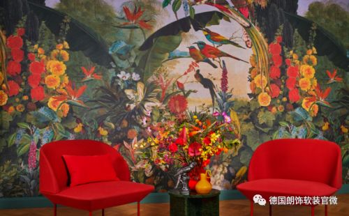 丛林风潮的最大特点是以绿色为主色的彩色混搭,充满生命力。<Barbara>系列带来了两幅完整的壁画,在墙壁上构成一座热带天堂——全尺寸、色彩瑰丽的画中美景。