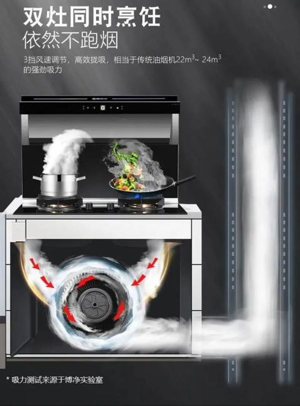 博净分体式集成灶侧吸下排技术能使油烟在没有扩散前全部吸走。与此同时,博净分体式集成灶采用超低噪声技术和静音风道设计,实现低噪音,完美的解决了传统厨房油污横陈,噪音严重的现象。