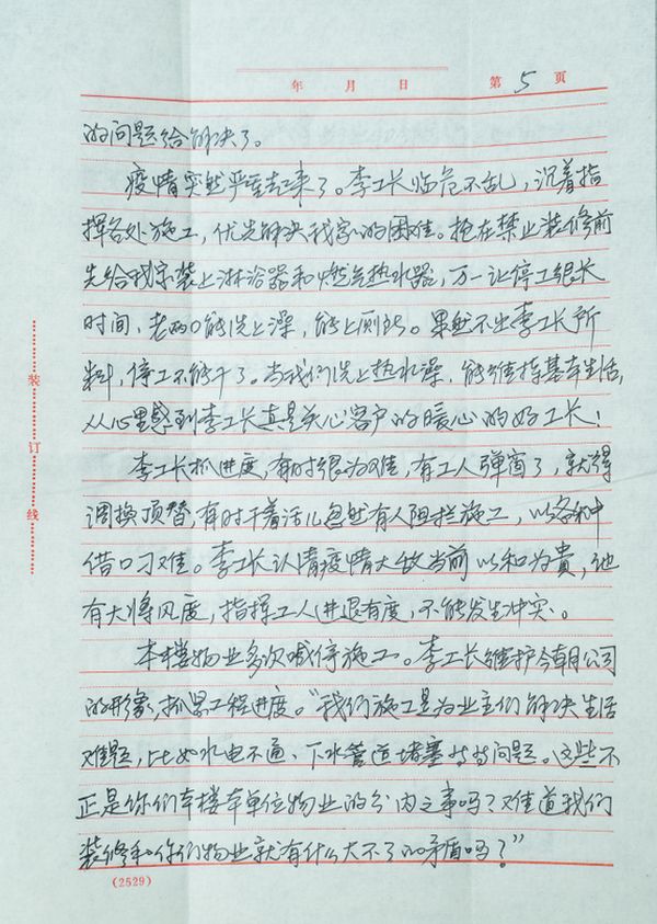 七月,迎着夏日的骄阳,今朝装饰集团工程管理中心收到了一封热情洋溢的感谢信,业主将自己在今朝装修的亲身感受,用俊秀的字迹一笔一划刻画进满满6页信纸。透过这封感谢信,让我们看到了两位古稀老人的诚挚之心,让我们看到了一个又一个今朝人为业主入住美好家而付出的不懈努力,也让我们看到了真心为业主着想的今朝人是一群多么可敬可爱的人。