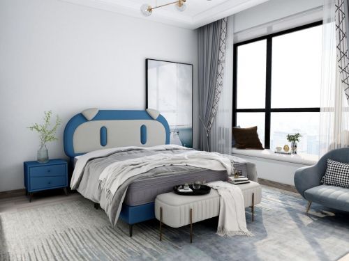 6-10岁的孩子天真浪漫,对美好事物充满好奇感,选择儿童床在外观上要温馨、童趣。儿童床DB-Y061床头采用卡通造型设计,色彩上湛蓝色搭配乳白色,营造出温馨宁静的卧室氛围,有助于儿童睡前转换心情。