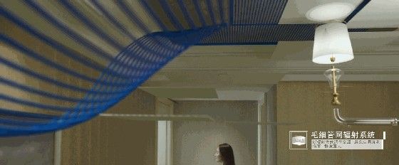 有了地源热泵系统的制冷方法,就需要对冷热的温度进行输送。毛细辐射空调系统基于仿生学原理,模拟植物的叶脉和人体皮肤下的血管,将进口PPR管材铺设在天花板、局部墙壁内,采用辐射传导的方式对室内输送冷热量,能够避免传统空调的直吹感,且环保静音,使空间温度更均匀柔和,营造高舒适度室内环境,以“自主衡温”赋予建筑极大的生命感。
