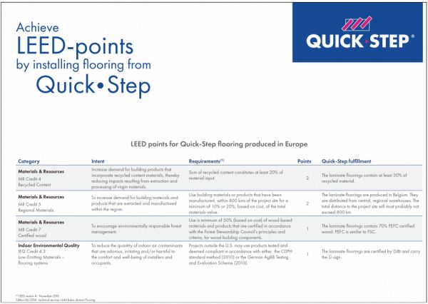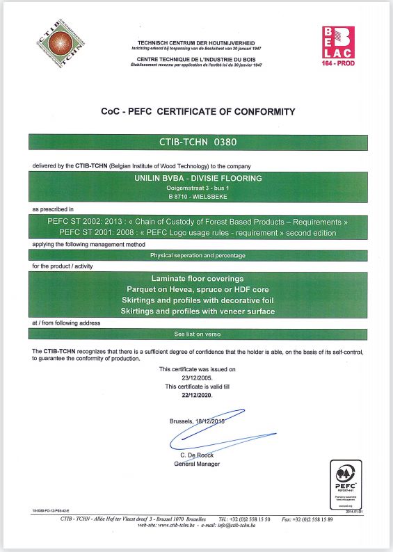 如得高比利时Quick-Step地板、意大利Garbelotto地板和芬兰Karelia地板均获有PEFC认证,其木材来自于高度关注可持续发展和社会责任的森林。