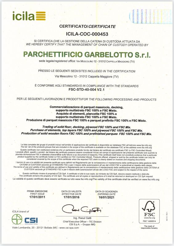 如得高的意大利Garbelotto地板、瑞典Kahrs地板和比利时Parky地板均获得FSC认证,其木材均来自于严格控制管理的森林,遵循高标准的生态、社会和经济发展要求。