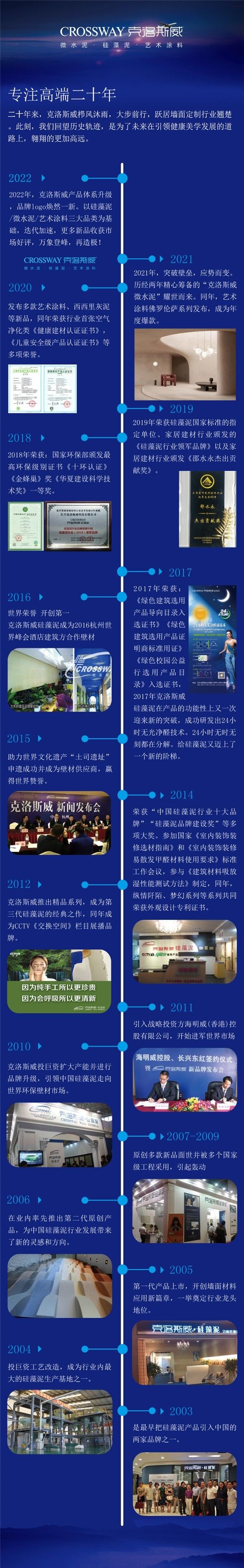 从2003年公司创立伊始至今,在健康环保壁材的探索之路上,克洛斯威初心不改,温暖如初。
