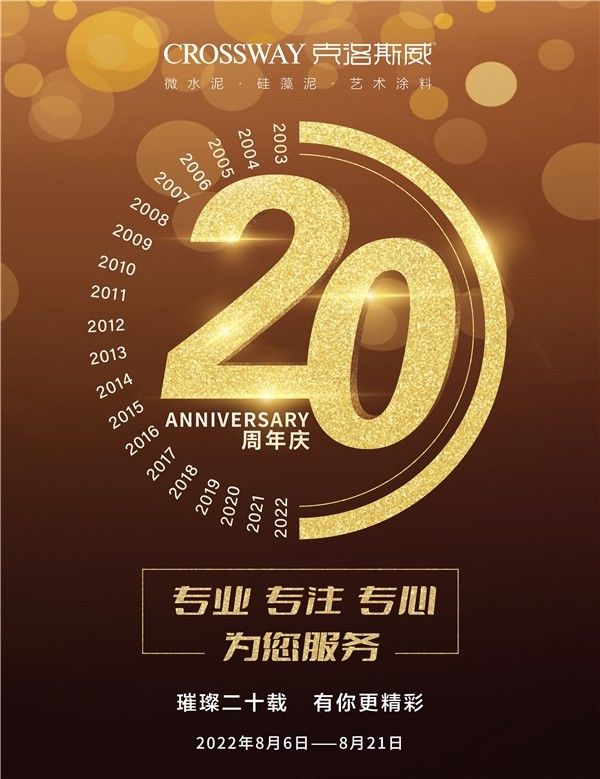 20年来,克洛斯威传递墙面健康美学理念,与万千业主共同见证了梦想点亮的时刻,每一步,皆感恩您的相伴!