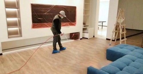 在对地面进行产品喷涂之前,我们需要保障地面的干净整洁。例如我们在进行墙壁治理时,如果有产品滴落到地板上,我们需要先用清洁工具处理干净之后再进行治理,避免因地面水渍而产生脚印。