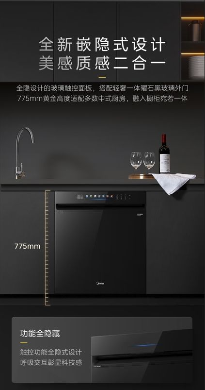 不仅如此,该款洗碗机还带来了设计创新,大大提升厨居空间美感。其采用全新嵌入式设计,全隐设计玻璃触控面板,一键轻松触控,便捷省心。同时搭配轻奢一体曜石黑玻璃外门,775mm黄金高度轻松适配岛形、U形、L形等多种中式厨房,轻松融入橱柜。同时安装也更为便捷,其踢脚线与橱柜线保持齐平一致,并且自带门板,无需单独定制,并还创新交互设计,工作过程中自动隐藏面板显示,动态呼吸体现工作状态,轻触唤醒多彩大屏,节能环保,科技感十足,为用户提供更好的交互使用体验。