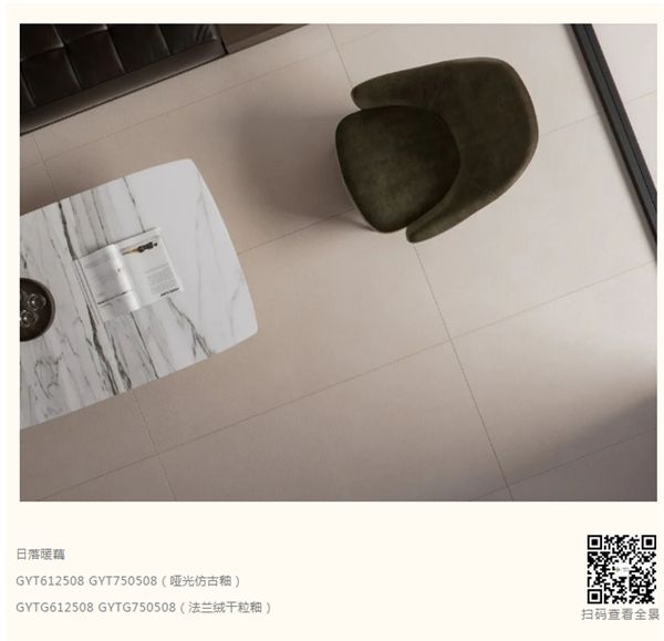 日落暖藕从自然中汲取美学灵感,将自然暖色呈现在每一块瓷砖之上,引领极致空间美学,让每一方家园都瑰丽而充满生机,无处不透露出温暖舒适之感。