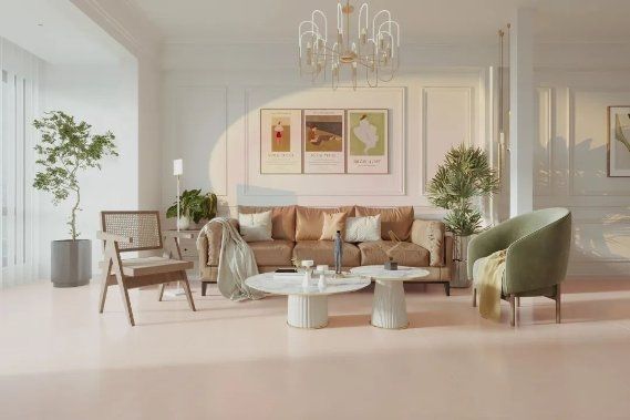 惠达质绘砖日落暖藕配色是取自国际色彩中骄人的藕色,色彩含蓄优雅,整体铺贴使空间显得充满都市阳光的感觉,可以让人有晴日初阳,微风不燥的感受。