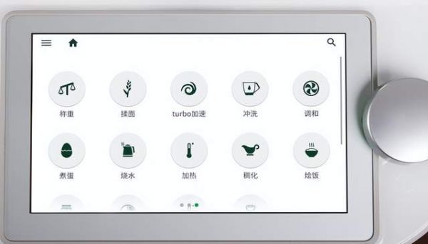 美善品烹饪优势还体现在预设烹饪模式,称重、揉面、冲洗、加热、发酵等等,在主机屏幕上点击,调出想要的模式,就可以一键称重、揉面等,不需要自己手动设置时间、温度、速度,实现懒人操作。