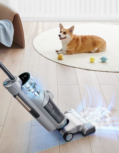 仔细考虑过洗地机清洁介质的朋友应该不难想象这三大痛点。先说二次污染,这对有滚刷的洗地机来说几乎是无解的难题。滚布绒布质地的吸水特性在清洁时可以吸取液体类污物,可是,成也吸水、败也吸水,滚布的吸水性越强,越让它不可能即时排出全部污水换成新水继续前进,也就可以理解为,滚布边吸污边前进的过程正是滚布不断积累污物的过程,每前进一厘米,滚布上也就多附着了这一厘米攒下的脏污。虽然大多数时候肉眼无法识别,但当你用滚布洗地机清洗全屋时,往往等于把难分解的污渍直接携带扩散到了全屋。第二点,女性用户及养宠家庭对缠绕毛发深有体会,但都几乎默认了这一规则:用完洗地机后,手动剪掉缠绕在上面的毛发,就像这是常规的必备流程。滚刷经过毛发,自然会缠绕在上面,有的品牌甚至推出有切割毛发功能的洗地机,但这并不算从根源解决了问题,反倒要担心拆卸时会不会被刀锋划伤。第三点自清洁,有自清洁功能的洗地机不少,但每一家都会附加一句,滚布是要定期晾晒的,不然容易滋生细菌。这对没有晾晒习惯的年轻人来说十分麻烦,本来平时碰都不想碰抹布,现在却要我把比抹布还脏数倍的洗地滚布拆下来晾?