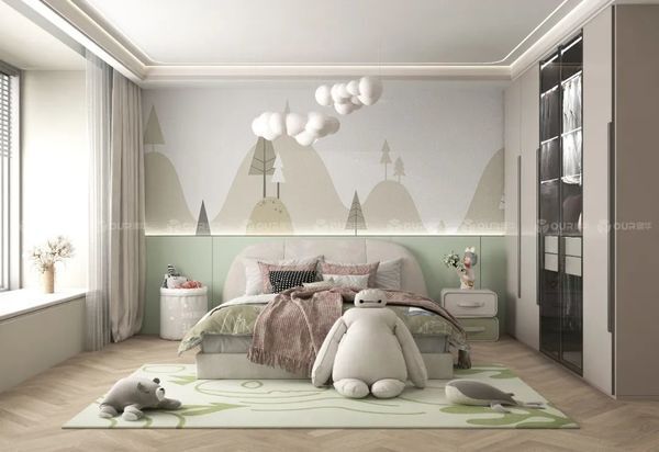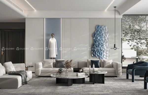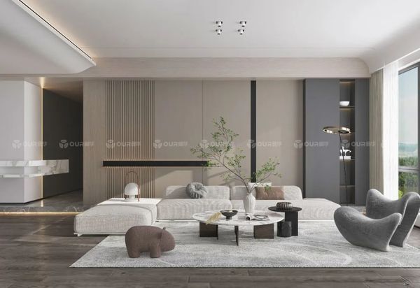 在空间里,人们的视觉重心会随深色系转移,为了更显层高高,配色建议上浅下深。