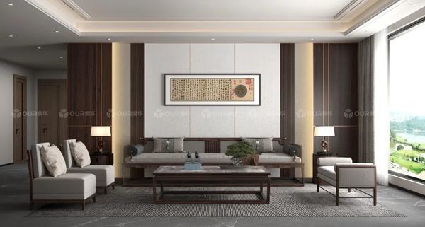 新中式古典雅韵,多采用自然山水装饰,相比较而言适合大户型设计。