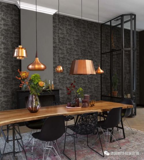 创新的将亮光和哑光完美结合,带有金属质感的基底与面层叠加的亚麻纹理相互映衬,使得这些动物元素在视觉上具有超强的三维立体效果。