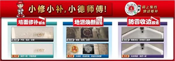 来,让小德微装来帮忙!小程序下单,轻松便捷,专业师傅,快速搞定地漏焕新、防霉收边、墙面修补等小修小补难题!