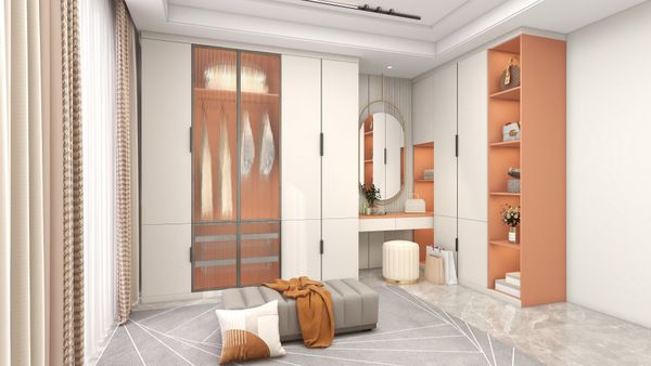 以秋桔色+东方白为案例展示,撷取2023年国际米兰流行色系“活力橙-秋色桔”,用高饱和度色系搭配低饱和度,以圆弧造型穿插成长空间,整个设计注重孩子性格发展,培养孩子生活感知力。高饱和度往往会激发孩子脑垂体,有利于孩子想象力的提升与开拓。