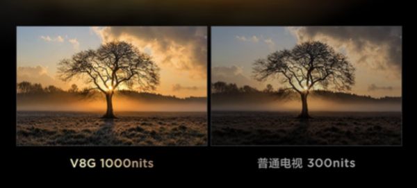 TCL V8G全系标配百级背光分区,最高拥有1000nits的峰值亮度表现,要知道这可是建立在50英寸电视仅有2199元到手价基础上的,同尺寸、同价位,如此诚意满满的配置仅以一家。在电视圈有个所谓的“黑话”叫做一亮遮百丑,也形象地展示了电视亮度表现对于画质的帮助。毕竟更亮的屏幕就能有效展现出画面中的高光区域,像是日出、夜晚的车灯等等,都更具真实感,不会出现所谓的屏幕发白等问题。