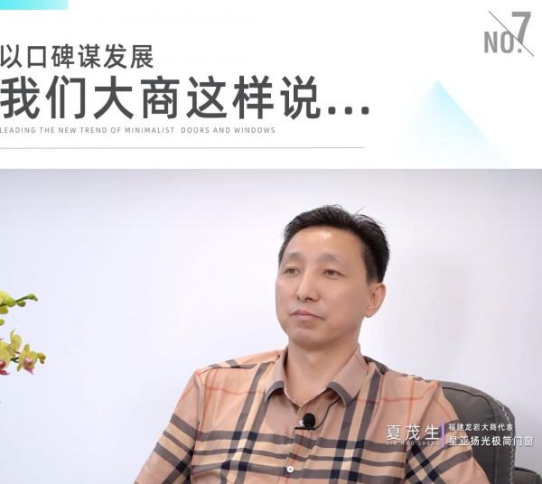 “与星亚扬光合作了五年,这五年来与星亚扬光的默契配合,让我实现了新的人生目标,因为星亚扬光,让我们认识了极简门窗市场,得到一个很大的机遇。”