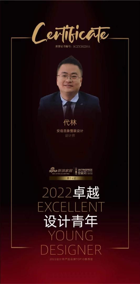【代林】很感谢新浪家居对我作品的认可,同时也感谢本次的采访。很荣幸我能获得新浪家居“2022 卓越设计青年”年度荣誉称号,这是对我多年从事家装行业能力的认可。