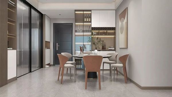 餐厅仍旧延续了柔和优雅的现代风格