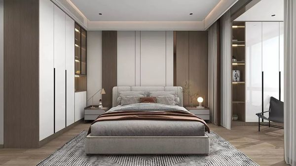 储物柜嵌入阳台,视觉上增加卧室空间的同时