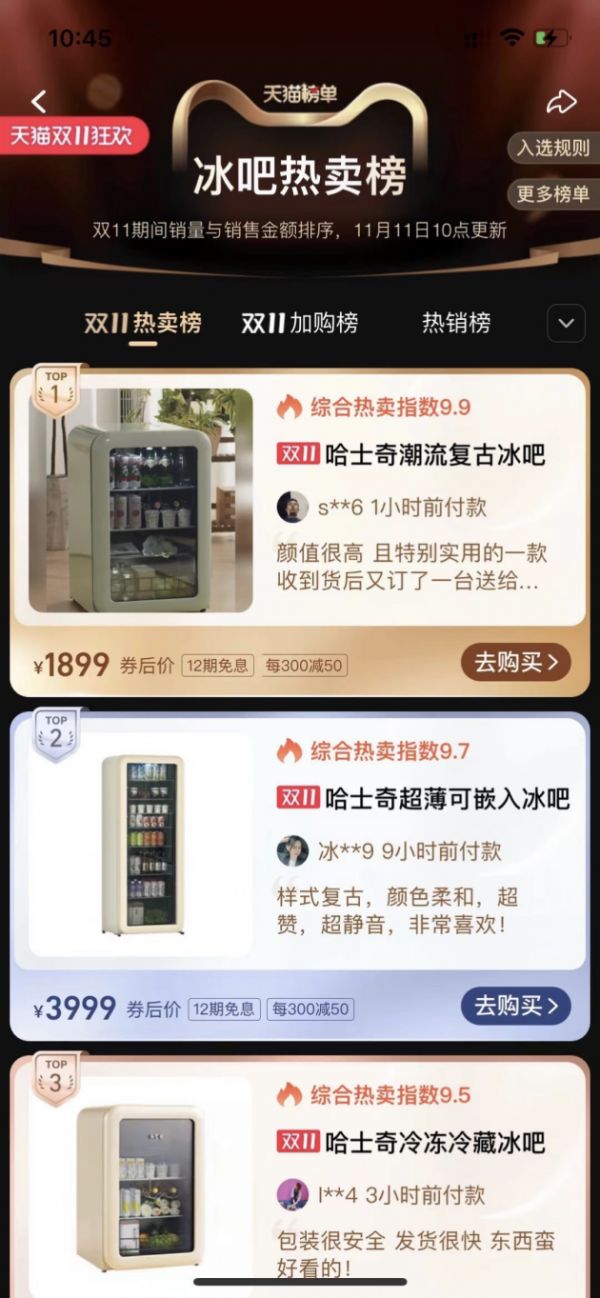 HCK哈士奇再次出手即王炸!本届天猫双十一“冰吧”、“复古冰箱”两大品类霸榜前三!