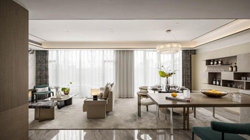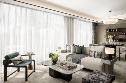 柔和的色彩和考究的空间材质,营造品质中式格调的舒逸空间,令身处其间的主人,感受到沉静柔软的安定。