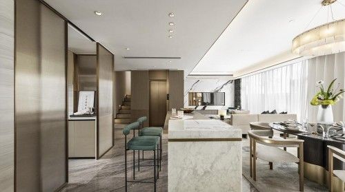 木心说,“生活的最佳状态,是冷冷清清的风风火火”。因此空间中,多选大理石、透光云石为材质,水墨灰和乳白相间如温润如玉的君子,使躁动的心得以安放。