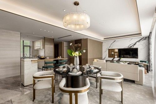 圆桌的配置围合起就餐的温度和礼序,一顿美食,便能与家人汇聚一堂,交流生活,交换笑容。