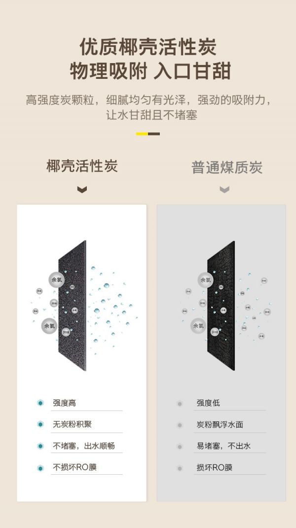 而在最终甜滤阶段,卡赫利用强度更高的不损害RO膜、出水顺畅、无炭粉积聚的椰壳活性炭对水中残余的余氯、有机物进行最后的精准打击,实现层层加码的全周期水质守护。