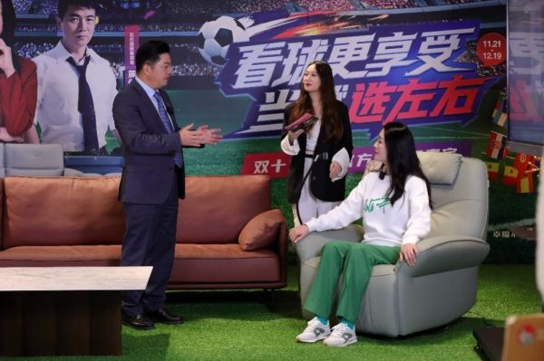 在直播镜头下,浦玮女士化身为产品体验官,依次体验情景系列、左右定制、现代系列、赛尚系列、图兰系列及线上产品。在试坐可转可摇可声控的左右电竞椅时,浦玮女士表示,坐上去太舒服了,像被妈妈拥入怀抱一般。不光是看球,平常忙碌一天回到家,躺在沙发上将身体伸开随意舒展,窝在里面也是一件很幸福的事情。