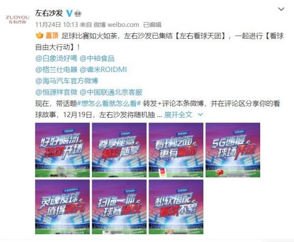 浦玮、黄健翔、刘语熙助阵,左右沙发足球营销玩出新高度