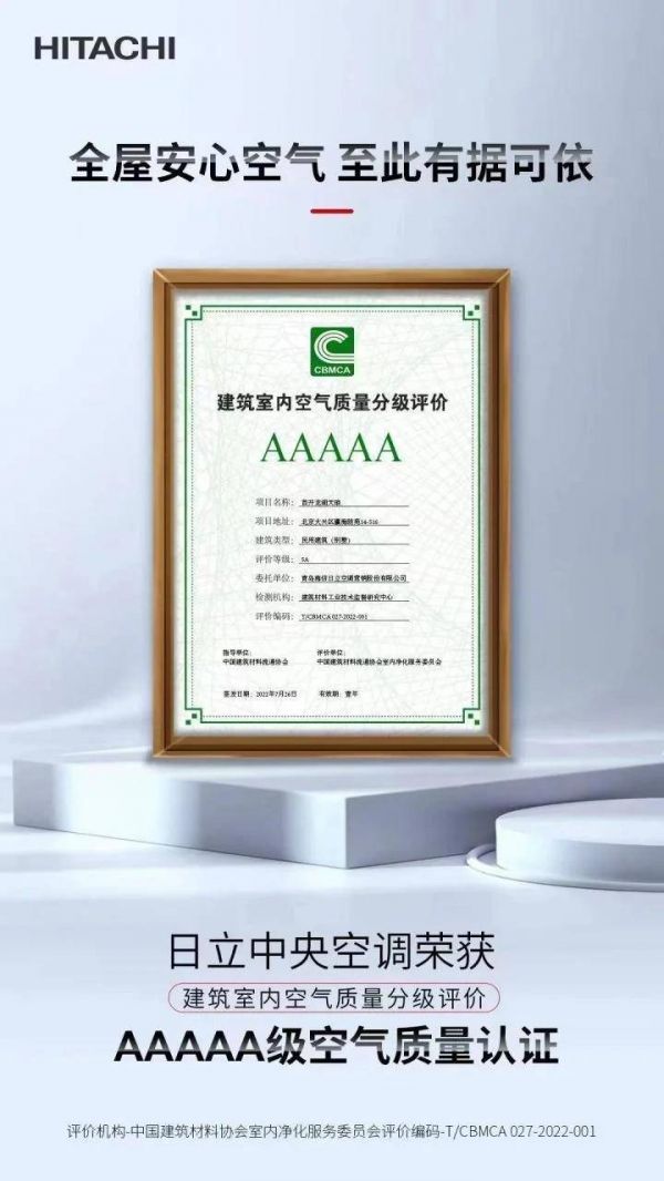 如今,很多人将室内空气质量作为判断日常生活是否舒适的重要指标。但究竟怎样的空气才能被视为健康,判断空气健康又应该参考哪些标准,却很少有人可以说清。而在不久前,日立中央空调获得《建筑室内空气质量分级评价》5A级空气质量认证的消息,让这项针对室内空气的行业标准引起了人们的注意。